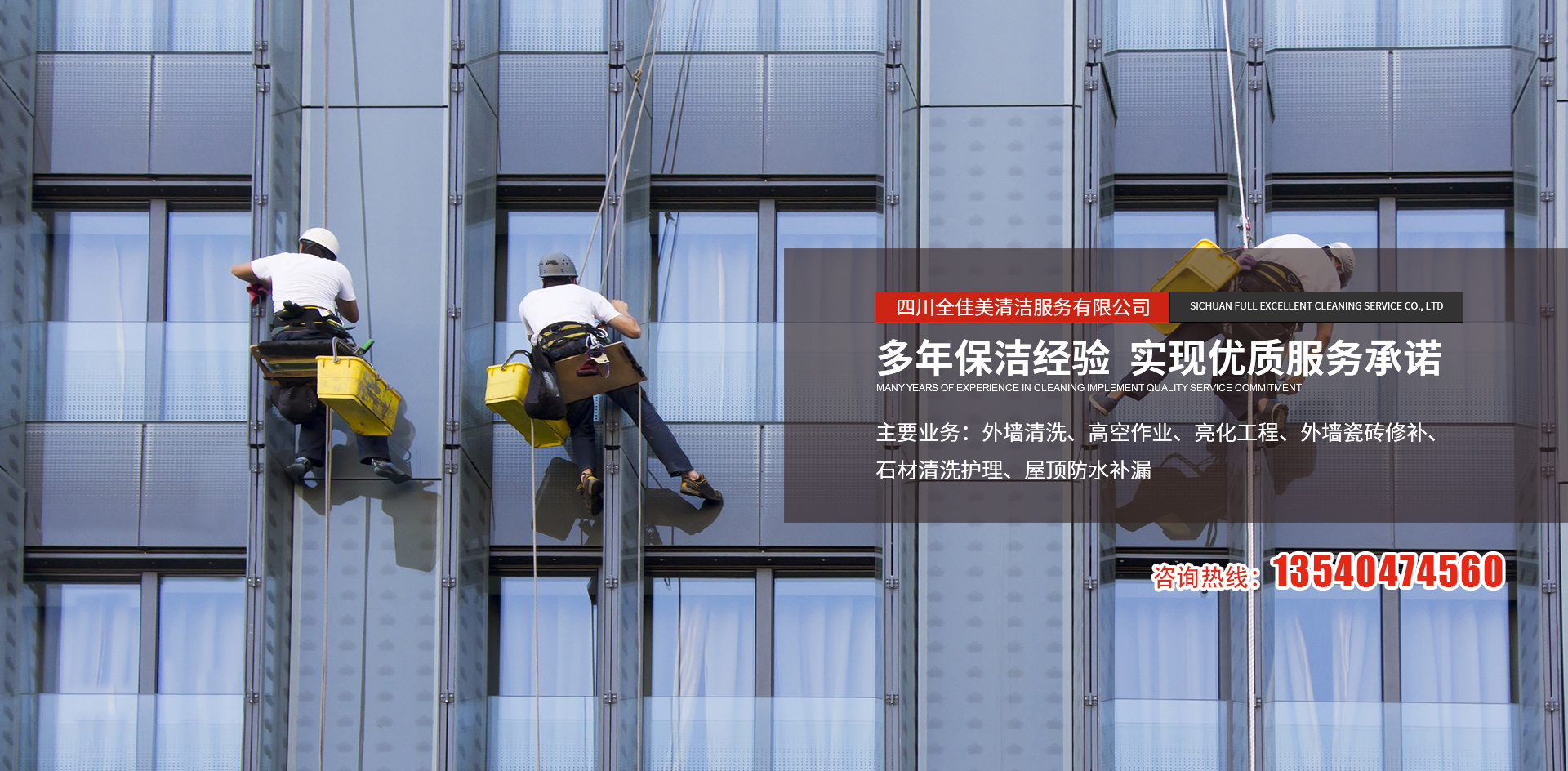 四川全佳美清潔服務有限公司成立于2017年11月20日,注冊資本200萬元人民幣,是一家專業(yè)從事高空外墻清洗,外墻維修,開荒保潔,石材養(yǎng)護,外墻防水等一體化的工程服務公司。公司先后服務于成都鐵路培訓學校,雙流空港酒店,省體育館等寫字樓及工業(yè)園區(qū)的外墻清洗保潔及維修服務。經(jīng)過多年的發(fā)展與努力,公司已具備一定的規(guī)模及實力。現(xiàn)擁有一支技術精湛的服務團隊,以高標準的服務品質(zhì),專業(yè)的安全技術實力,為全川不同群體的客戶提供更安全,更周到的清洗服務解決方案,期待與你的合作。